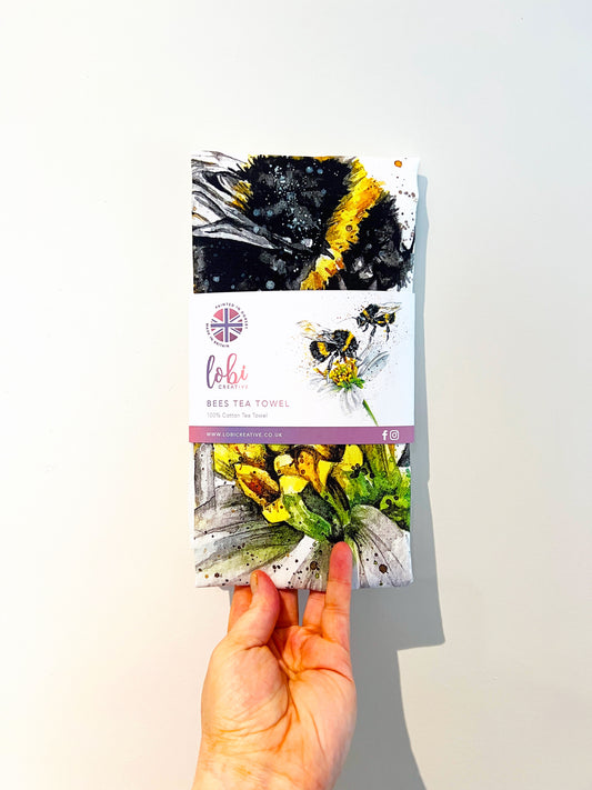 Watercolour Bees Cotton Tea Towel