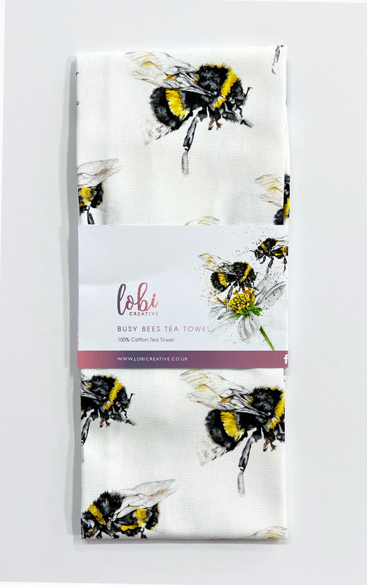 Watercolour Busy Bees Print Cotton Tea Towel