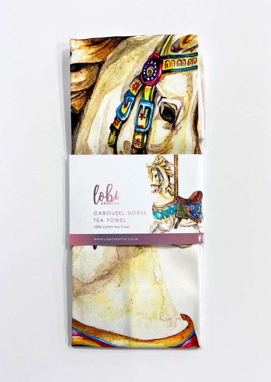 Watercolour Carousel Horse Cotton Tea Towel