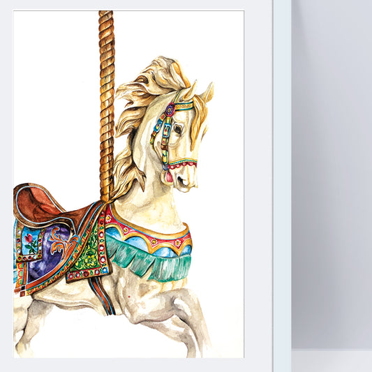 Signed Watercolour Carousel Horse A4 Print & Mount