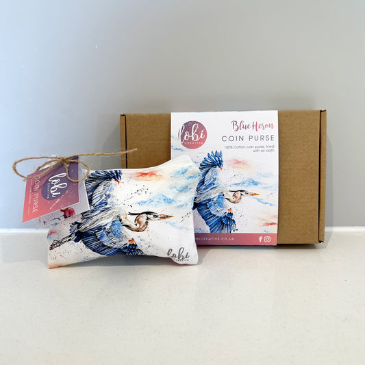Watercolour Blue Heron Cotton Coin Purse & Gift Box