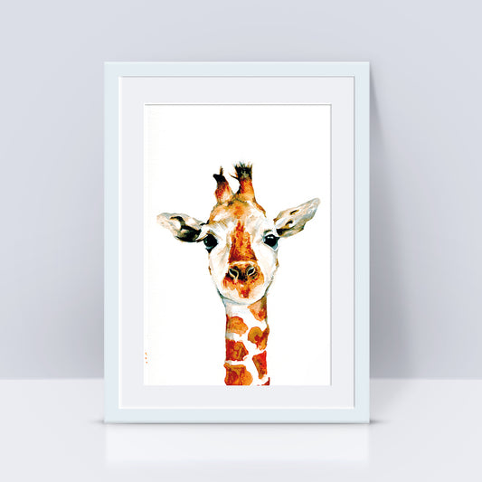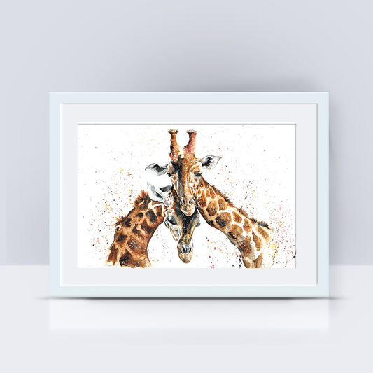 Signed Giraffe Pair Watercolour A4 Print & Mount