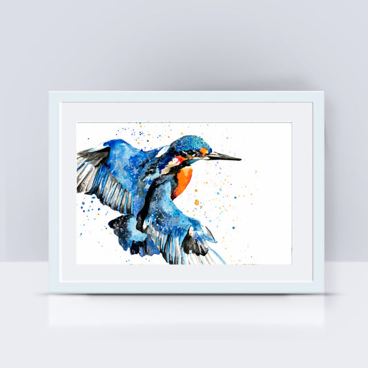 Signed Kingfisher Watercolour A4 Print & Mount