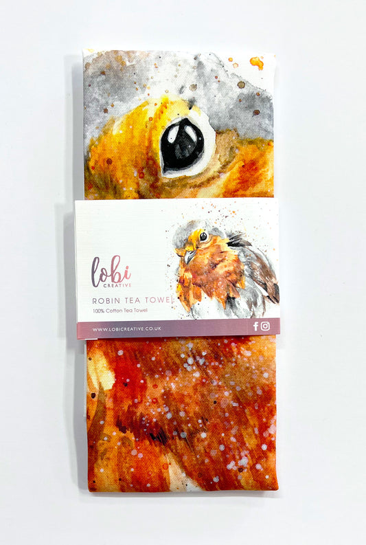 Watercolour Robin Cotton Tea Towel